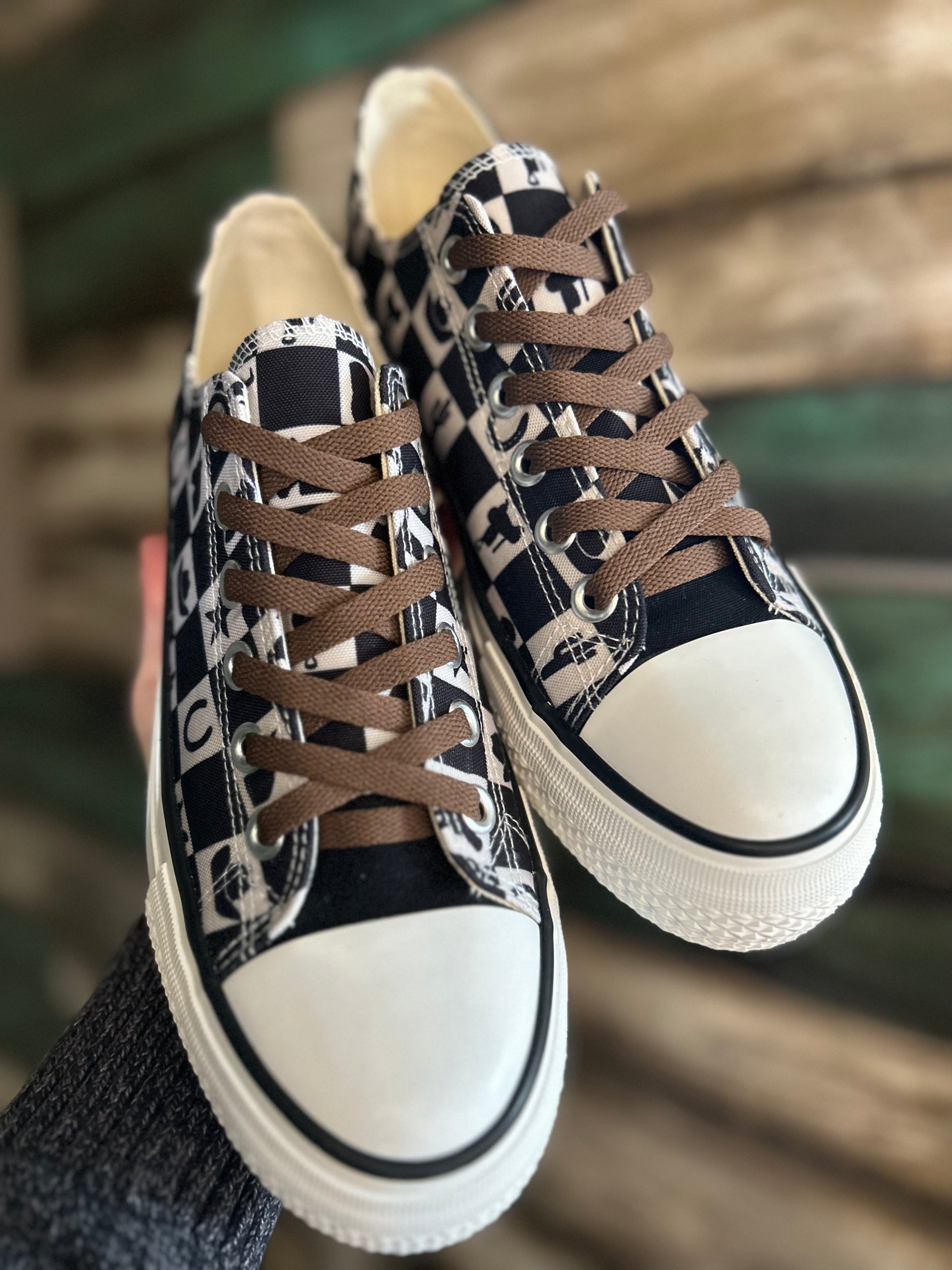A little twist to your classic checker print sneakers and what better way than to make them COWBOY !!